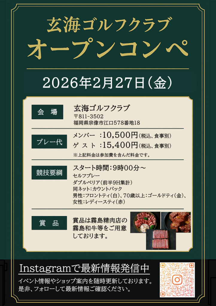 2026年2月27日(金)開催 ” 玄海オープンコンペ” を下記要項にて実施いたしますので、ご案内申し上げます。また、申込用紙はURLよりダウンロードして、ご提出下さい。